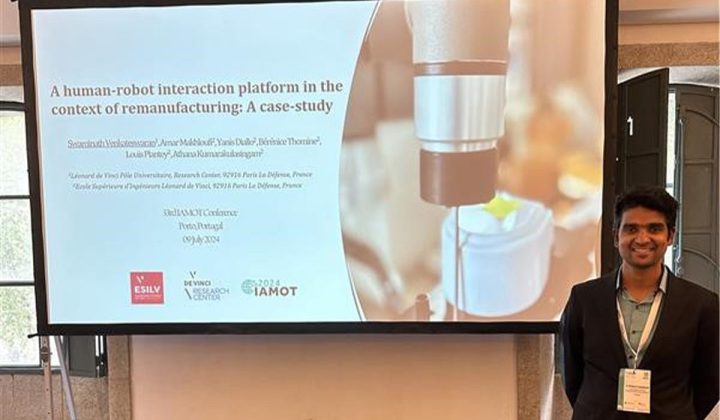 A work, part of the PI2 project, developed by a team of fourth—and fifth-year students at ESILV entitled “A Human-Robot Interaction Platform in the Context of Remanufacturing — A Case Study” was presented at the 33rd International Association for Management of Technology (IAMOT 2024) conference held in Porto, Portugal.
