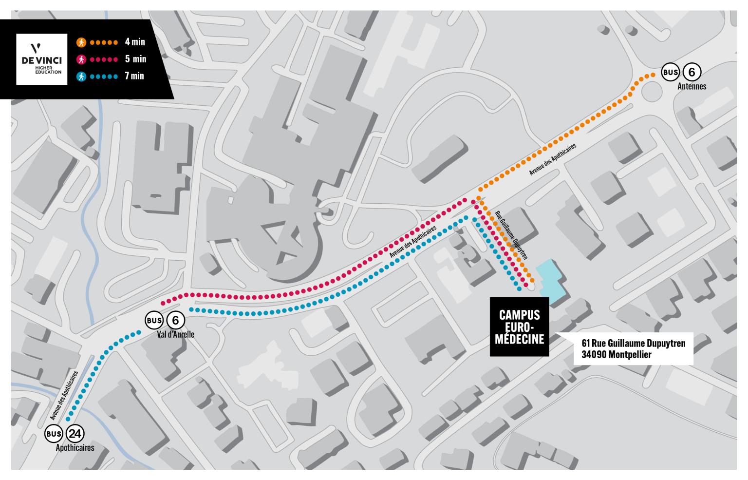 En transports : bus 6 (Antennes ou Val d’Aurelle), bus 24 (Apothicaires)