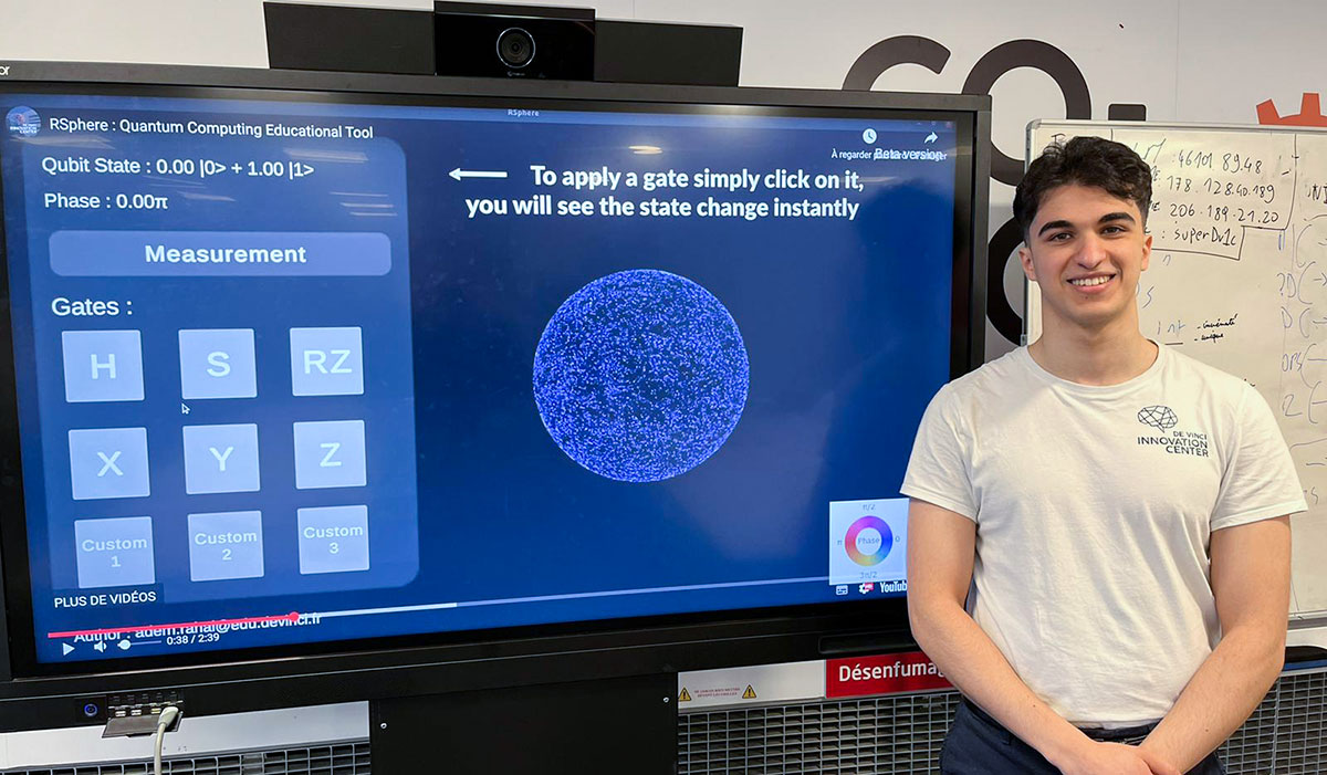 Adem, promo 2022, est étudiant de la majeure Creative Technology, dans le cadre du Devinci Innovation Center, le centre d’innovation transdisciplinaire du Pôle Léonard de Vinci. Passionné par l’informatique quantique et le partage de connsaissances, Adem a lancé RSphere, un outil de visualisation visant à simplifier la compréhension des états quantiques. Le programme est accessible en libre téléchargement sur la plateforme Github.