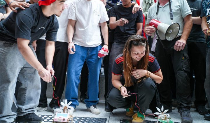 Moment fort de l’année, le showroom PIX1 clôture la période de travail sur le projet. Les élèves y présentent leur prototype et participent à des épreuves techniques chronométrées : course de vitesse, franchissement de pente, rotation mécanique, marche arrière avec obstacle ou encore transport de charge.