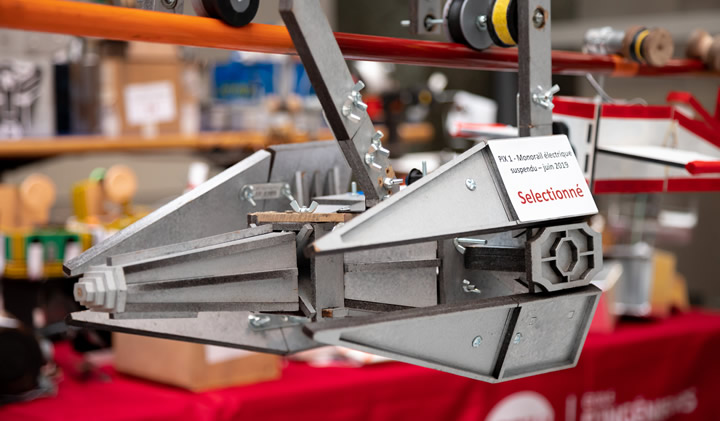 Le défi du projet PIX1 de cette année 2018-2019 est de concevoir un monorail suspendu fonctionnant avec un moteur électrique fabriqué par l’équipe projet PIX1 durant le semestre 1.