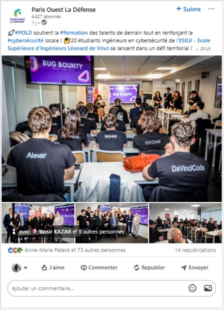 Ce programme est mené en partenariat avec Paris Ouest La Défense (POLD), Yogosha, le Campus Cyber et CYBIAH, dans le but de former les experts de demain tout en renforçant la protection des infrastructures numériques locales.