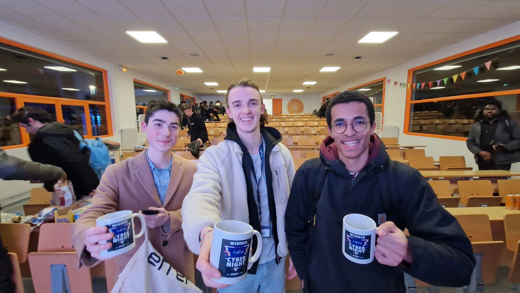 L’équipe composée d’Amaury Dugardin, promo 2024, Maxime Awoukou, promo 2024, et Mathys Reboux, promo 2028, tous les trois membres de DaVinciCode, a passé la nuit dédiée à la cybersécurité pour défendre les couleurs de l’ESILV.