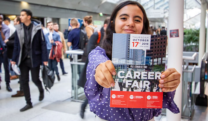 Ce jeudi 17 octobre, une centaine d’entreprises et plus de 250 recruteurs étaient présents au Pôle Léonard de Vinci pour l’édition 2019 de la Career Fair, l’événement annuel où se rencontrent les entreprises partenaires et les différents profils d’étudiants qui sont au cœur de la transversalité des enseignements du Pôle.