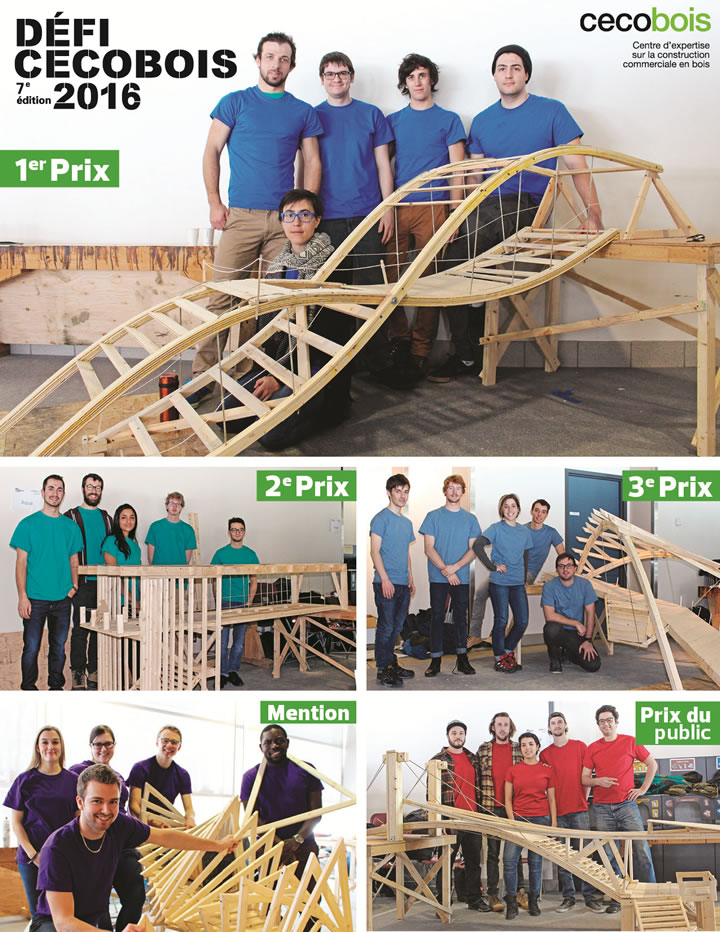 La 7e édition du Défi cecobois est organisée au Québec par l’Université Laval, en collaboration avec cecobois, le centre d’expertise sur la construction commerciale en bois. Elle a lieu dans le cadre de la semaine des sciences forestières et du Salon de la forêt.