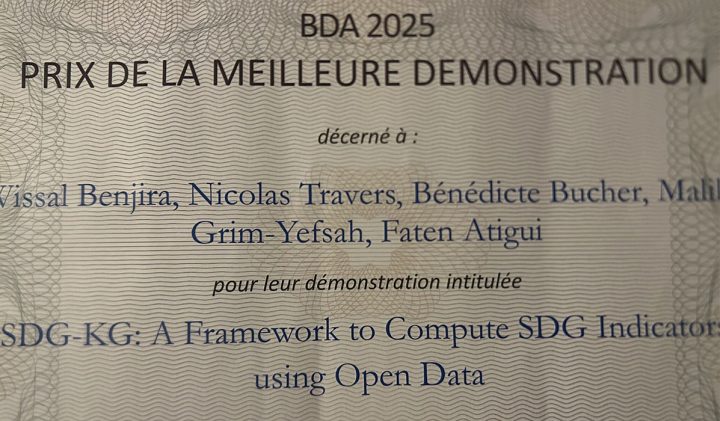 During the 41st edition of the BDA Conference, held at IRIT Toulouse in October 2025, Wissal Benjira, PhD student and ESILV alumni, received the Best Demo Award for her research work on computing Sustainable Development Goal (SDG) indicators using open data.
