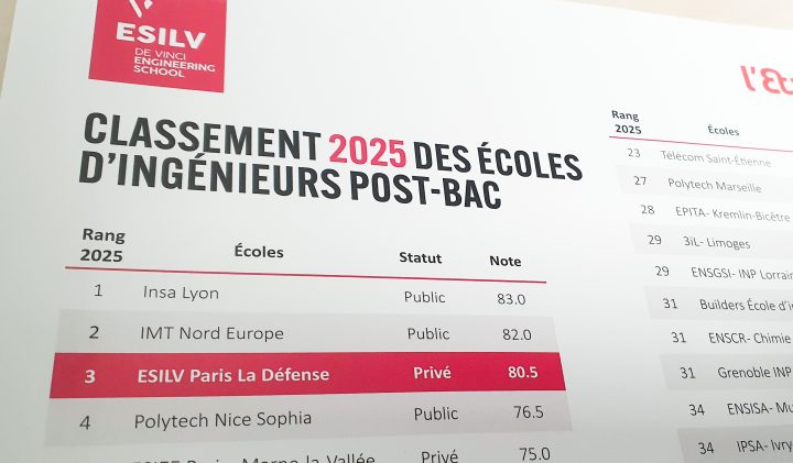 ESILV has been ranked 3rd in the 2025 L’Étudiant ranking of engineering schools that recruit students after the French Baccalauréat via Parcoursup, offering a five-year engineering programme. With campuses in Paris, Nantes, and Montpellier, the school holds the top regional position in Île-de-France, Pays de la Loire, and Occitanie.