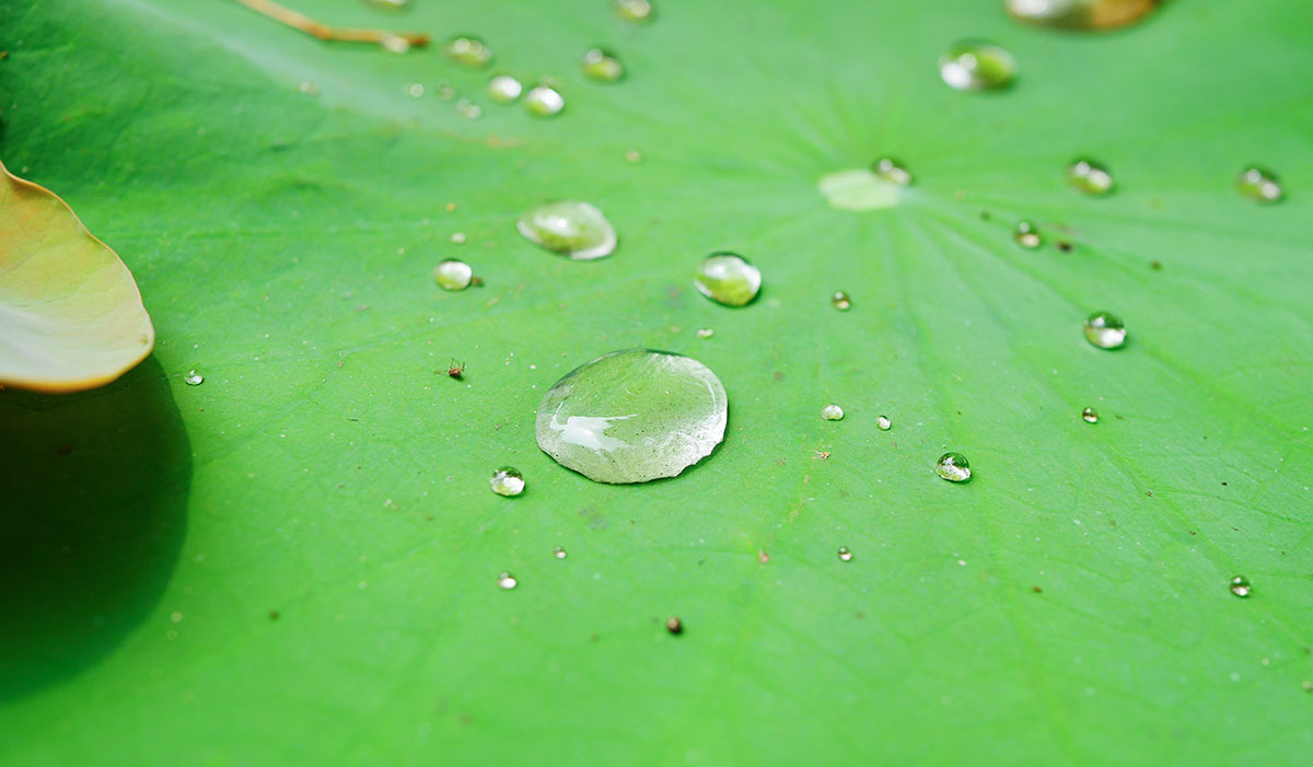 Superhydrophobic surfaces are extremely difficult to wet, such as lotus leaves, duck, or peacock feathers. The contact angle of a drop of water on a superhydrophobic material is greater than 150°.