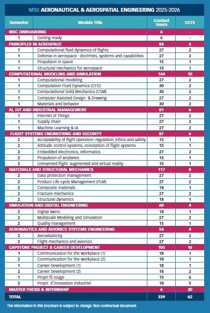 MSc Aeronautical & Aerospatial Engineering accredited by CGE – Conférence des Grandes Ecoles • 18 month programme • 90 ECTS • 2026-2027 Tuition fee 12900 € • Intake: January 2026