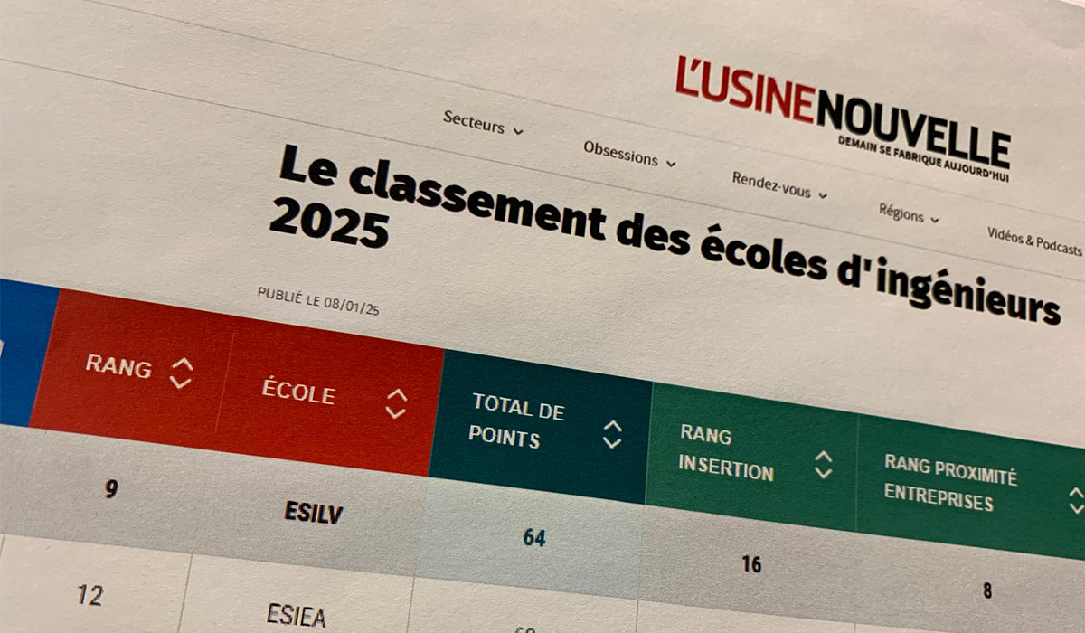 In 2025, ESILV ranked first in L’Usine Nouvelle’s category for French engineering schools specialising in “Computer Science, Electronics, and Telecommunications.”