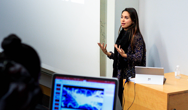 Marilou Larouche a expliqué aux étudiants de l’ESILV qu’au-delà des grands espaces canadiens, le dépaysement a également lieu dans les salles de classe de l’UQAC. La pédagogie nord-américaine veut en effet que les heures de cours soient en faible nombre pour permettre aux élèves de travailler sur des projets d’études.