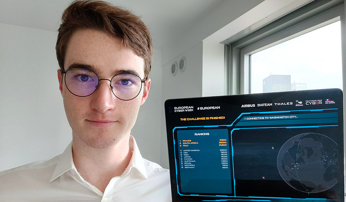 Chaque année, les épreuves techniques de qualification visent à déceler les meilleurs talents qui se réunissent à Rennes pour la finale de l’ECW. En 2020, 5 étudiants ESILV se sont particulièrement illustrés lors du CTF de pré-sélection de l’European Cyber Week : Louis Wolfers (promo 2022), Lucas Bichet (promo 2021), les deux étudiants de la majeure Informatique, objets connectés et sécurité et Alexis Godin, Ciaran Gruffeille et Clovis Carlier, tous les 3, étudiants de la promo 2023.