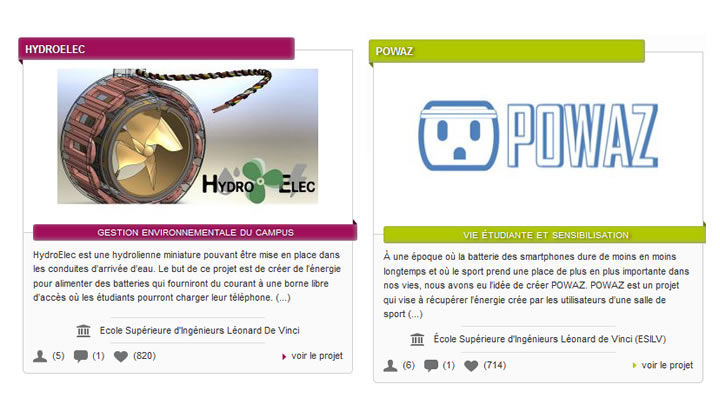 15 projets au total sont en compétition à ce stade, contre 41 proposés au départ : des projets d’étudiants de l’Ecole Polytechnique, Sciences Po Grenoble, l’ESILV, l’IUT de Belfort-Montbéliard, Neoma Business School, l’Université Paris Descartes, l’Université de Cergy-Pontoise, Télécom Bretagne, l’ESDES, l’EPF, le CNAM PAris, Toulouse Business School, l’Université Paris Dauphine et l’ENSTA ParisTech.