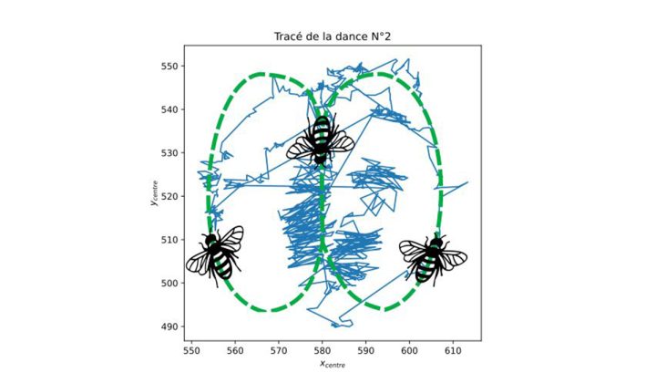 La vidéo met également en avant deux waggle dances, illustrant avec précision les schémas de déplacement caractéristiques des abeilles.