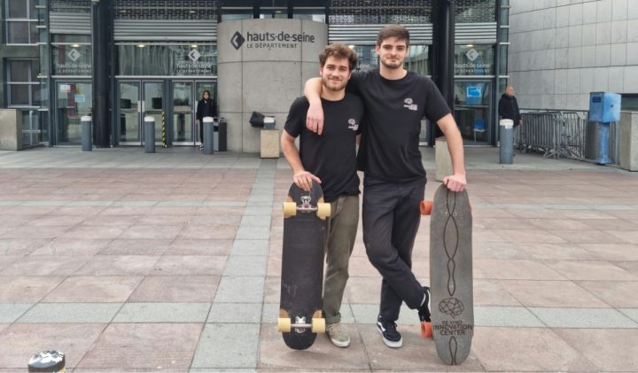 En étant fans et pratiquants de sports extrêmes et de glisse, et plus particulièrement de longboard de descente (un sport qui consiste à prendre des skateboards et à descendre à grande vitesse sur la route), Mathis et Yohann ont remarqué que les planches utilisées dans ce sport sont souvent fabriquées avec des matériaux non durables et polluants. Fabriquer une planche écoresponsable a été le défi qu’ils se sont fixés. Décryptage.