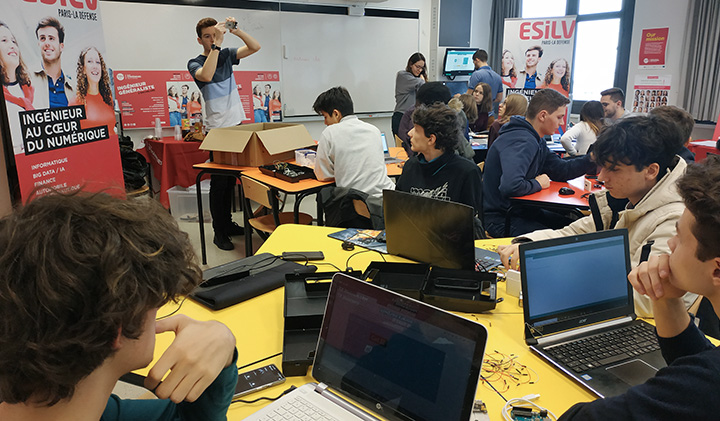 Accueillis par le directeur de l’ESILV, les lycéens sont initiés aux univers technologiques des majeures du cycle ingénieur :
