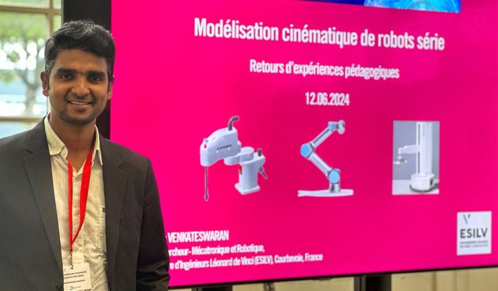 De son côté, Swaminath Venkateswaran, enseignant-chercheur a présenté le module Cobotics, qu’il enseigne aux étudiants. Ce module aborde la cinématique, la planification de trajectoire et la manipulation d’architectures sérielles, essentielles pour les secteurs de l’industrie, de l’automatisation et du médical.