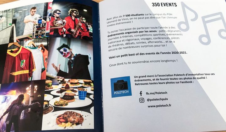 La plaquette alpha recense quelques-uns des évènements qui ont marqué l’année étudiante précédente. Un avant-goût de ce qui attend les futurs ingénieurs de l’ESILV, en admission post-bac en prépa intégrée ou en première année de cycle ingénieur par le biais du concours e3a/PT. Tournoi de rugby du concours Avenir, Challenge du Monde des Grandes Écoles et Universités, 4L Trophy, Coupe de France de Robotique, Course croisière EDHEC…