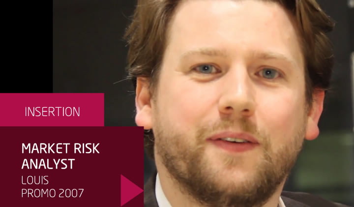 Assez rapidement, Louis a pu évoluer au sein du front office de la SGCIB, et devenir analyste risque de marché : il a occupé ce poste en premier lieu sur les positions actions et dérivés actions, pendant une durée de trois ans, et ensuite sur les produits de crédits, pendant également trois ans. Il est désormais en charge de la coordination des sujets réglementaires, toujours en salle de marché.