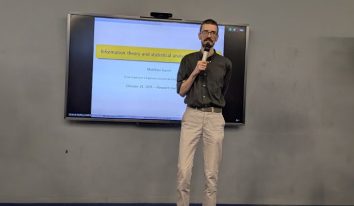 Matthieu Garcin, enseignant-chercheur en mathématiques appliquées, a, quant à lui, exposé ses recherches sur la théorie de l’information et l’analyse statistique des séries temporelles, appliquées à des données financières et climatiques.