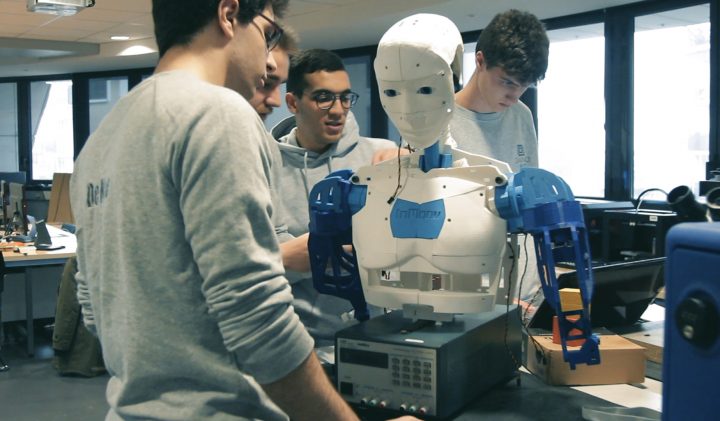 A l’ESILV, le projet InMoov est porté par DaVinciBot, l’association robotique, qui participe entre autres chaque année à la Coupe de France de Robotique. Cinq élèves-ingénieurs travaillent sur le robot InMoov.