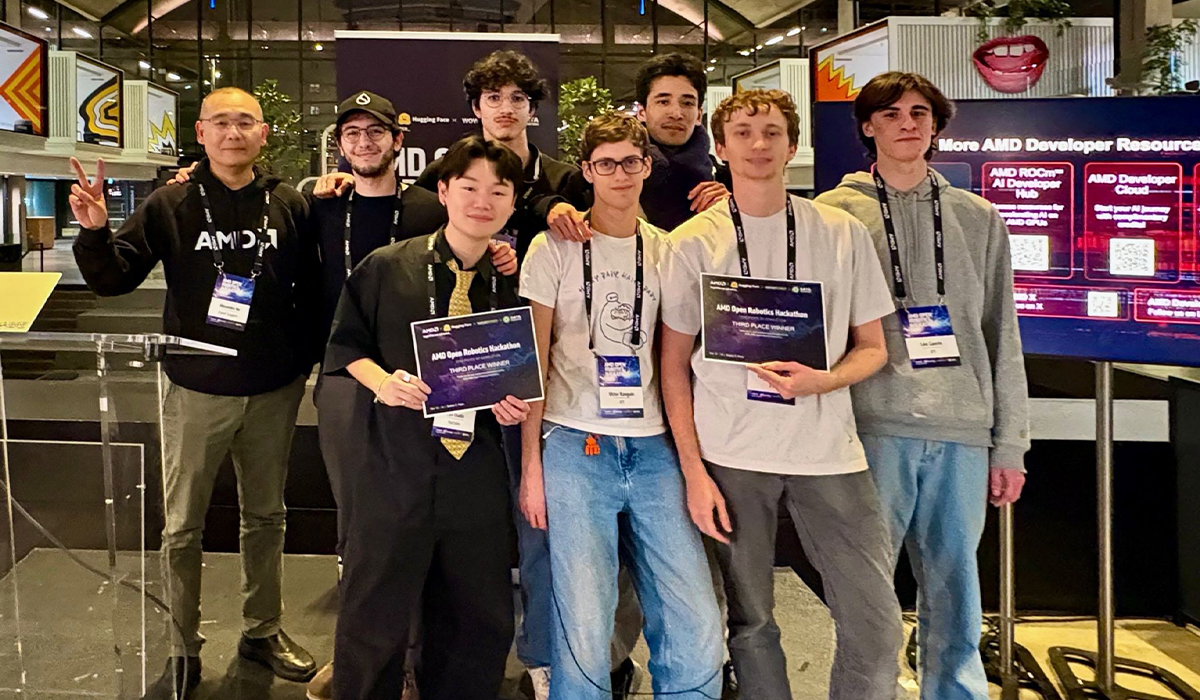 Deux équipes de l’ESILV ont participé au Paris Open Robotics Hackathon, organisé par AMD et Hugging Face à STATION F. À l’issue de ce week-end intensif dédié à la robotique et à l’intelligence artificielle, les deux équipes ont été récompensées par une 3ᵉ place ex æquo dans la catégorie Robotique ouverte.