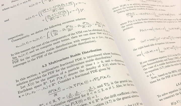 Ils abordent l’équation de Chapman-Kolmogorov, l’équation de Fokker-Planck, la dérivée fractionnaire de Riemann-Liouville, la répartition géostable, les dynamiques de prix et la théorie de la marche aléatoire.