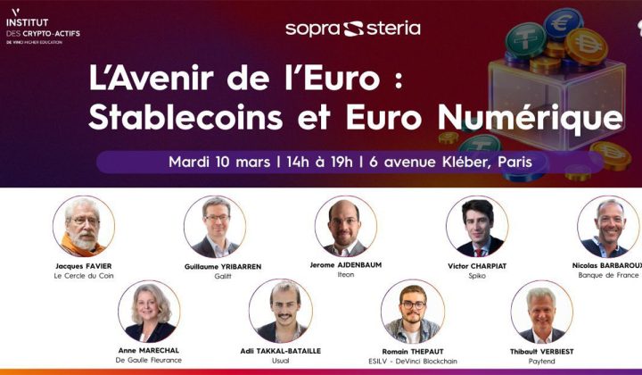 L’avenir de l’euro et le développement des stablecoins ont constitué le thème d’une conférence organisée à Paris par Sopra Steria et l’Institut des Crypto-Actifs du Pôle Léonard de Vinci. Experts, chercheurs et étudiants ont échangé autour des transformations monétaires liées aux technologies numériques.