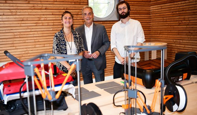 Ils sont trois élèves-ingénieurs en cinquième année et passionnés par la culture du Making. Marc Guynot de Boismenu, Paul Grall et Zacharie Guillaume, anciens coordonnateurs de l’association DeVinci Fablab, sont au cœur du laboratoire de fabrication 3D la Pépinière de l’Ecollectif Briand, le nouvel espace de coworking dédié aux Courbevoisiens de 11 à 30 ans.