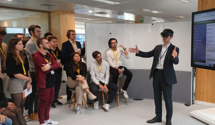 Qui dit Capgemini, dit des experts en technologies, mais pas que… Maxence Choufa, promo 2025, a découvert ainsi la Direction Recherche & Innovation de « Capgemini engineering ». « Elle propose aux étudiants des stages ou des doctorats autour de sujets de recherches dans divers domaines. Nous avons également pu tester deux projets menés par l’entreprise : une IA traduisant la langue des signes et un casque de Réalité Mixte.