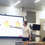 Après une rapide présentation des bâtiments, Amin KHIARI a piloté la visite du Pôle, d’abord l’Infothèque puis le foyer des étudiants qui a été l’occasion d’un bain de foule chaleureux pour Madame la Ministre. Enfin, M. MANCHADO, Responsable du Département des Sports, a présenté son équipe et notamment Youri SEDYKH, professeur permanent, double champion olympique et recordman du monde du lancer de marteau. Henri CHAVANCY, ¾ centre au Racing Metro 92 actuellement dans le Top 14, et étudiant au sein de la filière Sportifs de Haut Niveau de l’EMLV a échangé quelques mots avec Mme PECRESSE.